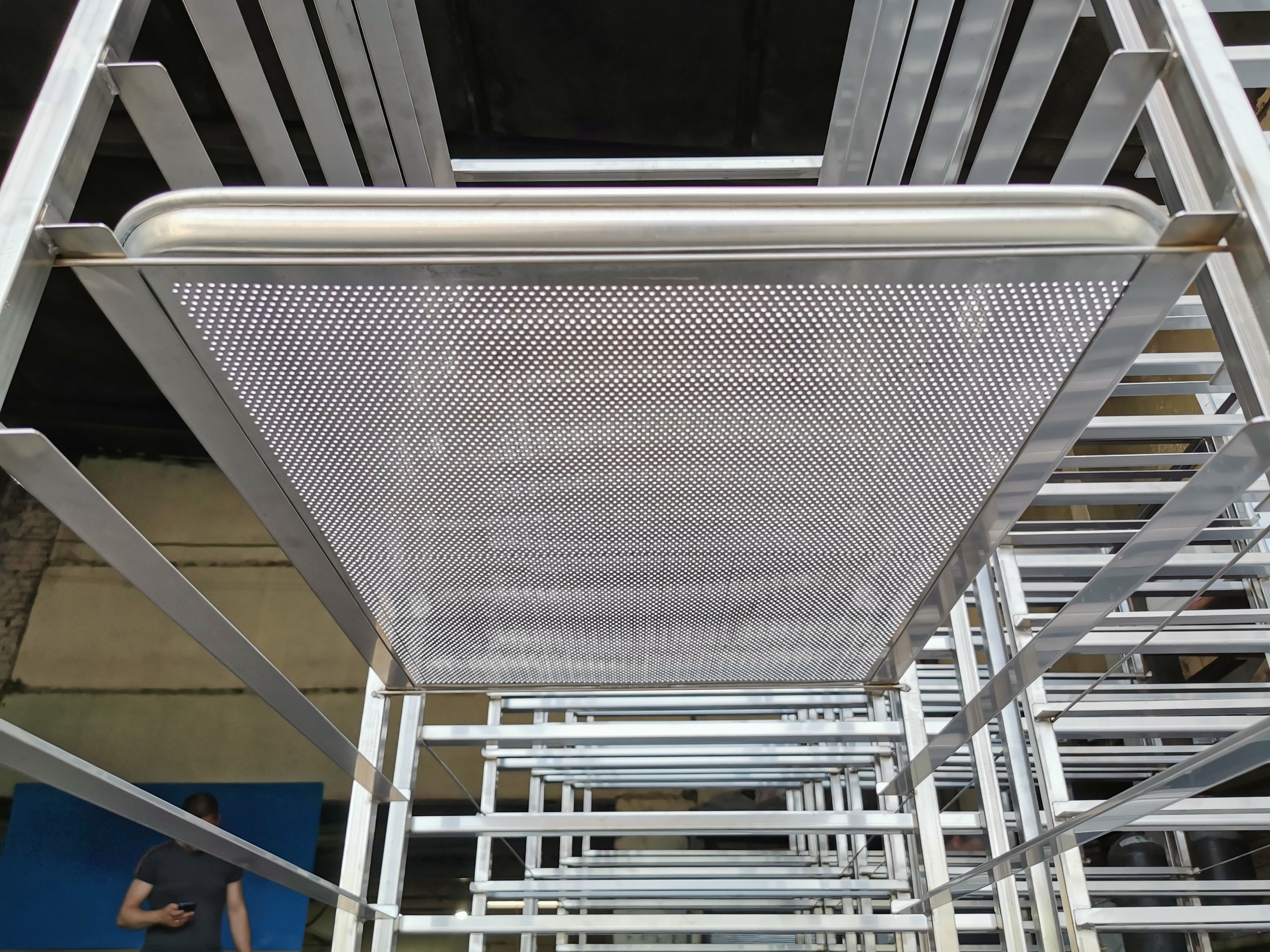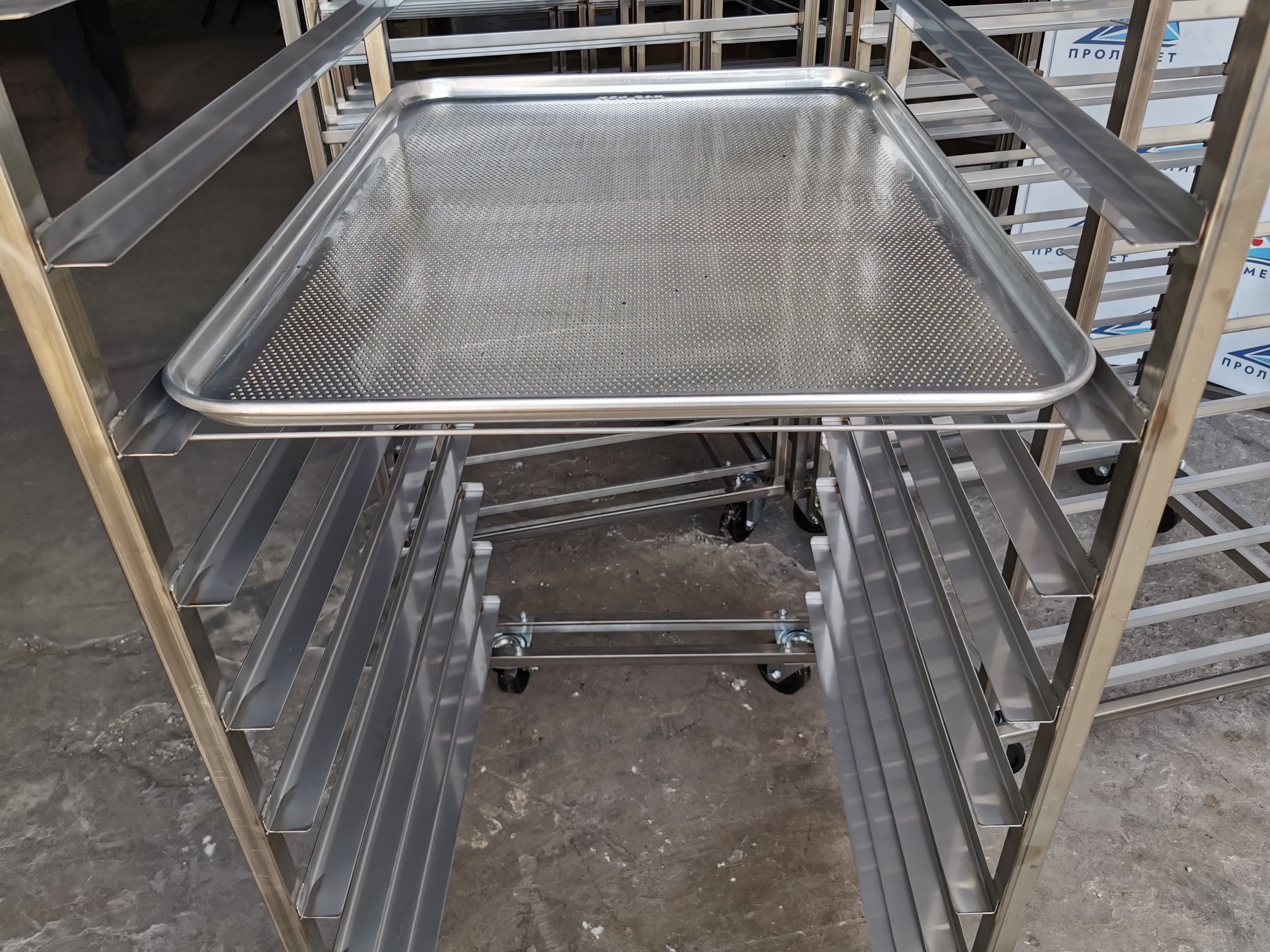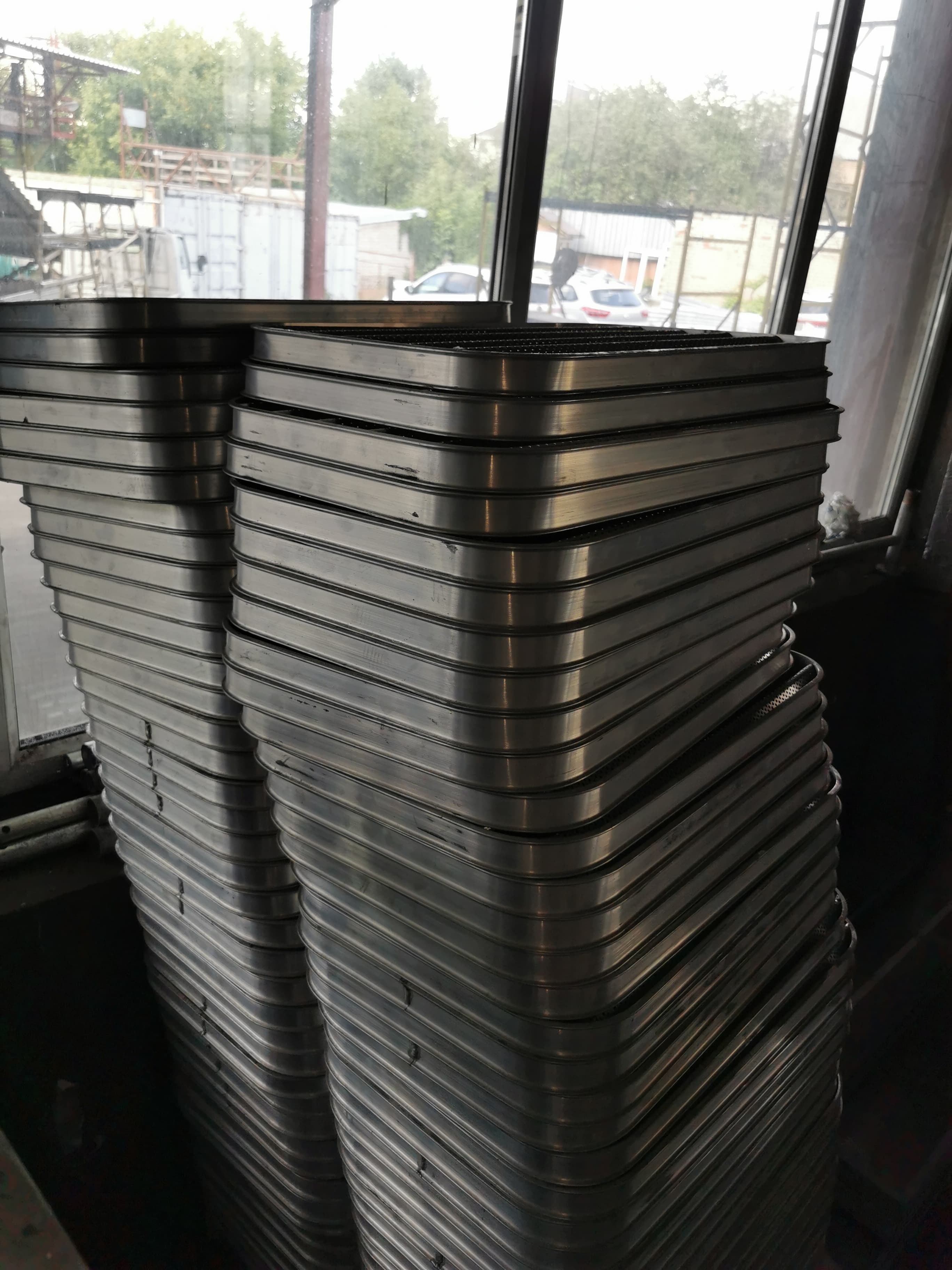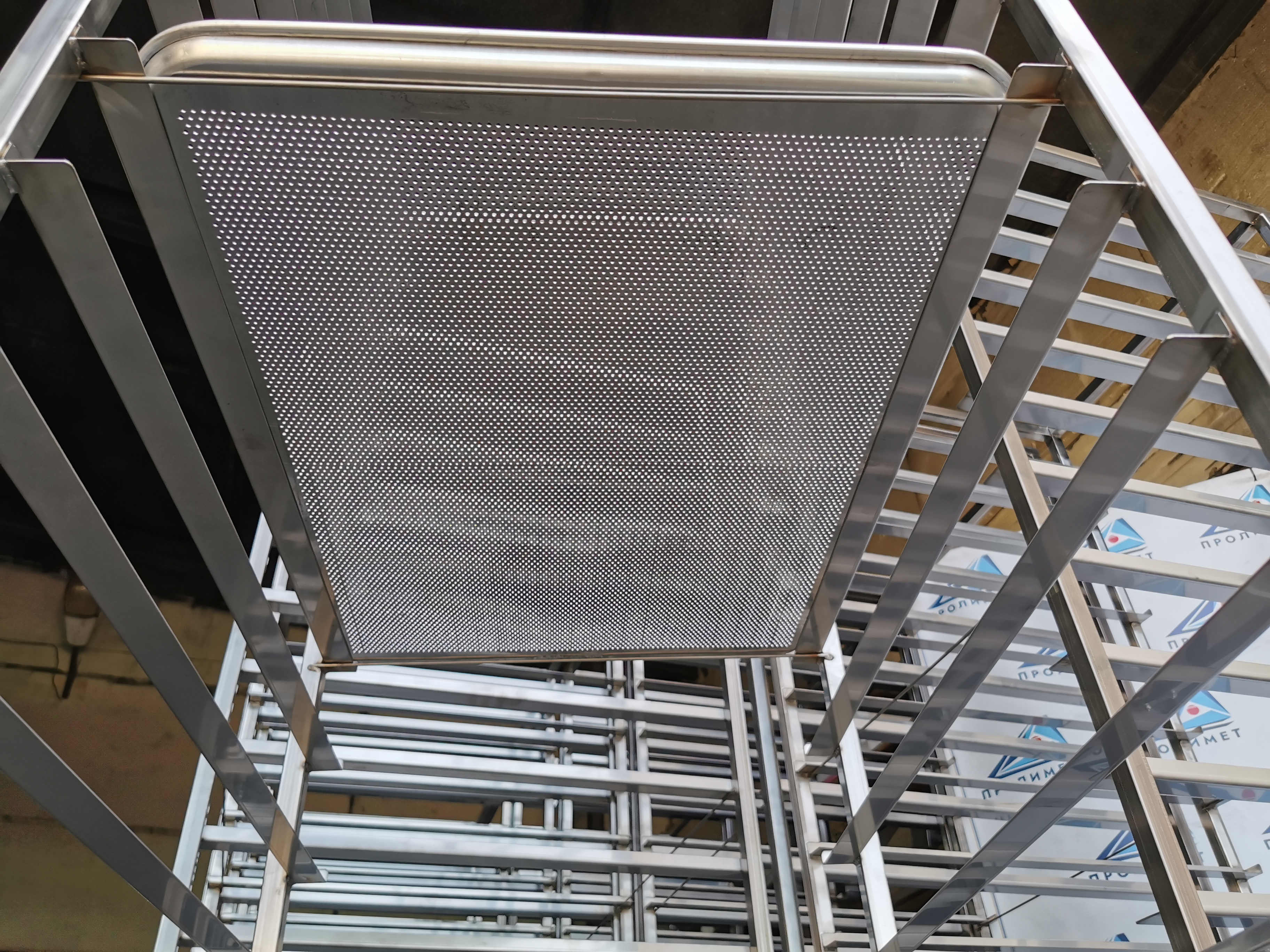 Мы обеспечиваем комплектующие — противень в лотной сборке, с перфорированным днищем, может поставляться с ручками, маркировкой, антипригарным покрытием. Также предоставляем консультации по эксплуатации и обслуживанию: как чистить противень, как сохранить перфорацию и продлить срок службы.